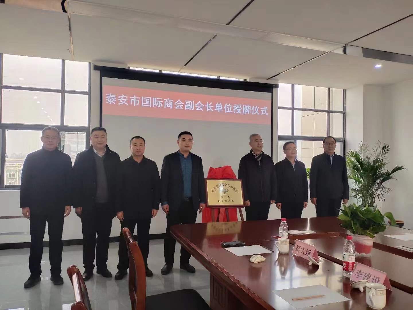2022年1月6日下午,泰安市貿(mào)促會(huì)黨組書記、會(huì)長陳勇,市貿(mào)促會(huì)黨組成員、副會(huì)長張桂明,泰安市國際商會(huì)秘書長趙傳兵,泰安市會(huì)展副總經(jīng)理胡闊偉,泰山區(qū)委副書記、區(qū)政府代區(qū)長周鵬飛,區(qū)委常委、區(qū)政府黨組副書記朱光勝,區(qū)政府黨組成員、區(qū)政府辦公室主任孫一國,區(qū)政府黨組成員、區(qū)政府辦公室副主任孫大偉,區(qū)貿(mào)促會(huì)黨組書記李建設(shè),區(qū)貿(mào)促會(huì)會(huì)長湯琳琳,省莊鎮(zhèn)黨委書記謝慧清,省莊鎮(zhèn)鎮(zhèn)長季秀華等相關(guān)領(lǐng)導(dǎo)蒞臨泰安德美新廠區(qū)舉行隆重的授牌儀式,為泰安德美機(jī)電設(shè)備有限公司董事長秦大斌先生授牌,泰安德美機(jī)電設(shè)備有限公司榮升為泰安市國際商會(huì)副會(huì)長單位!