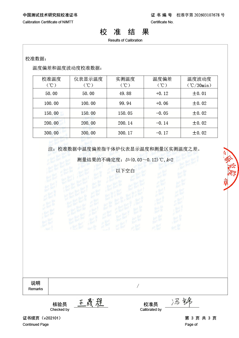干體爐-校準證書 2026-3-25 本文被閱讀 398 次