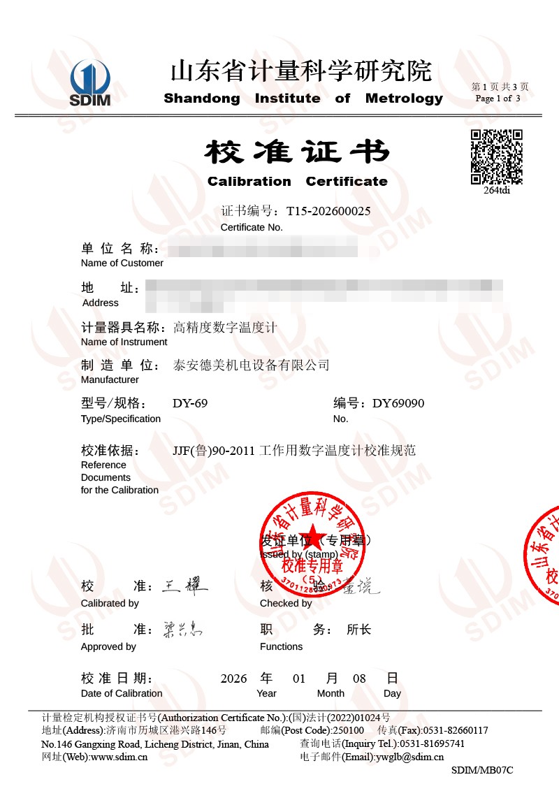 高精度數(shù)字溫度計(jì)校準(zhǔn)證書 2026-1-13 本文被閱讀 275 次