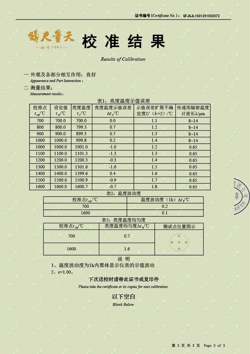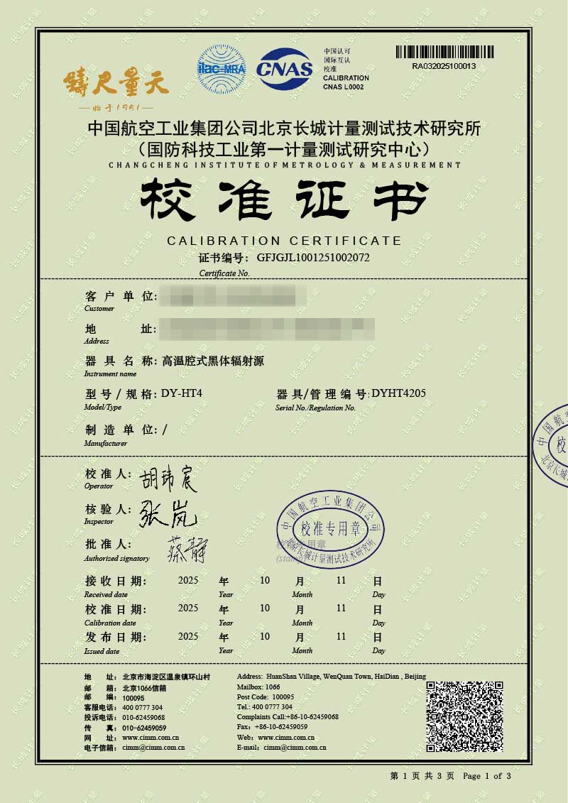 | 上一條:低溫液槽式黑體爐(-40-100℃)校準(zhǔn)證書 | 下一條:DY-XW100E無(wú)線溫濕度記錄儀 |