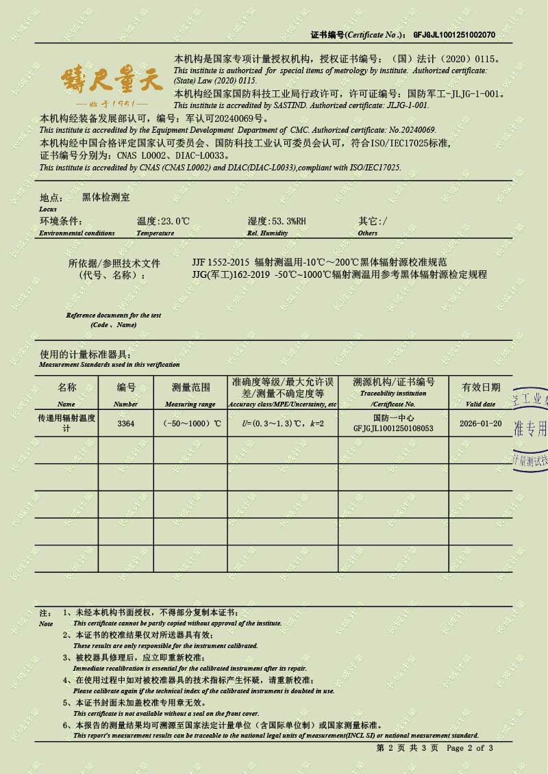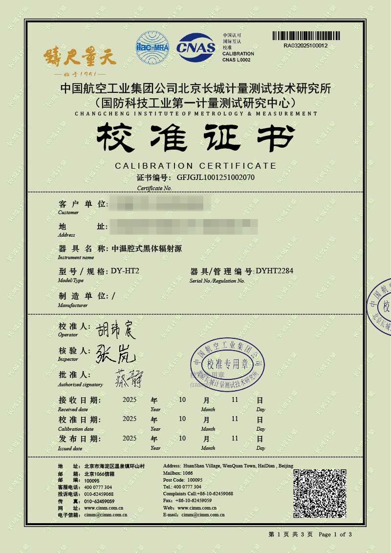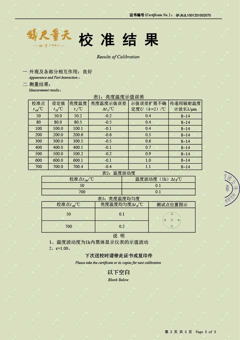 中溫腔式黑體輻射源(50-700℃)校準證書 2025-10-30 本文被閱讀 1546 次