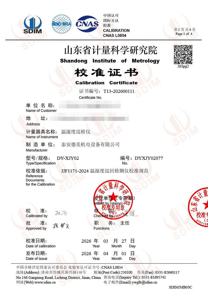 溫濕度巡檢儀-校準(zhǔn)證書 2026-4-7 本文被閱讀 238 次