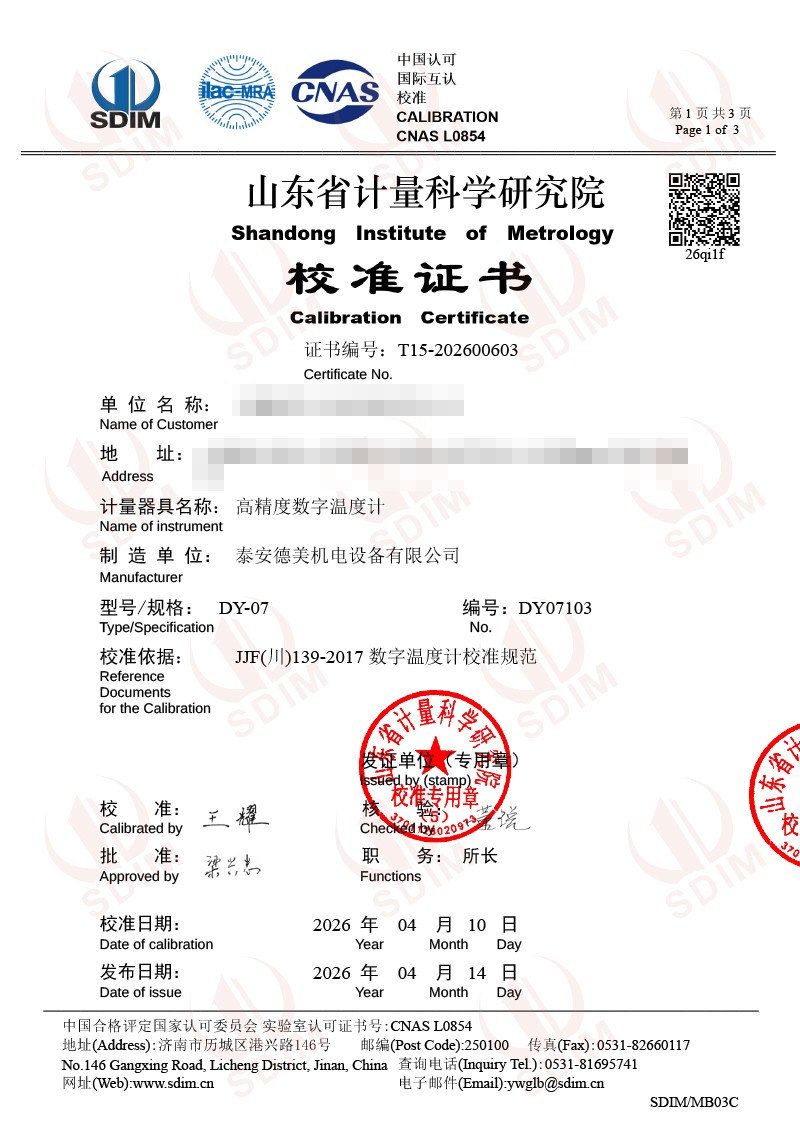 高精度數(shù)字溫度計-校準(zhǔn)證書 2026-4-14 本文被閱讀 157 次