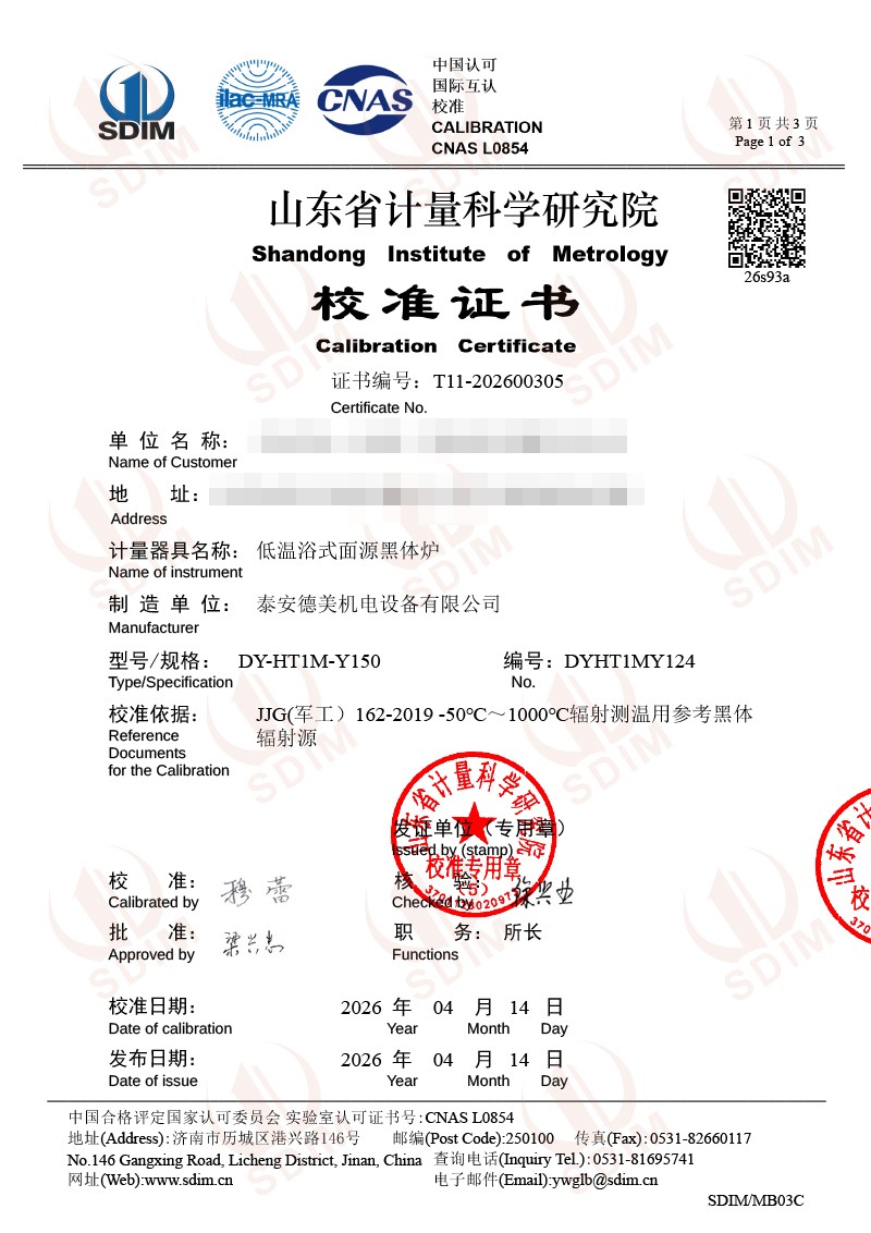 低溫浴式面源黑體爐-校準(zhǔn)證書 2026-4-20 本文被閱讀 224 次