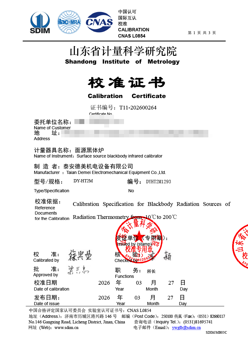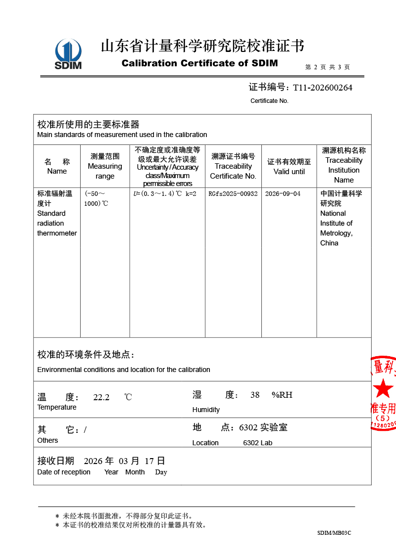 面源黑體爐-校準(zhǔn)證書 2026-4-7 本文被閱讀 591 次