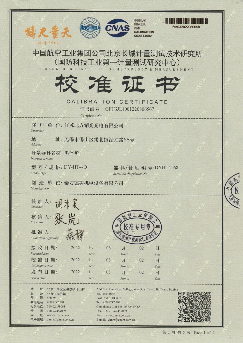 江蘇北方湖光光電有限公司-黑體爐 2022-8-17 本文被閱讀 13159 次