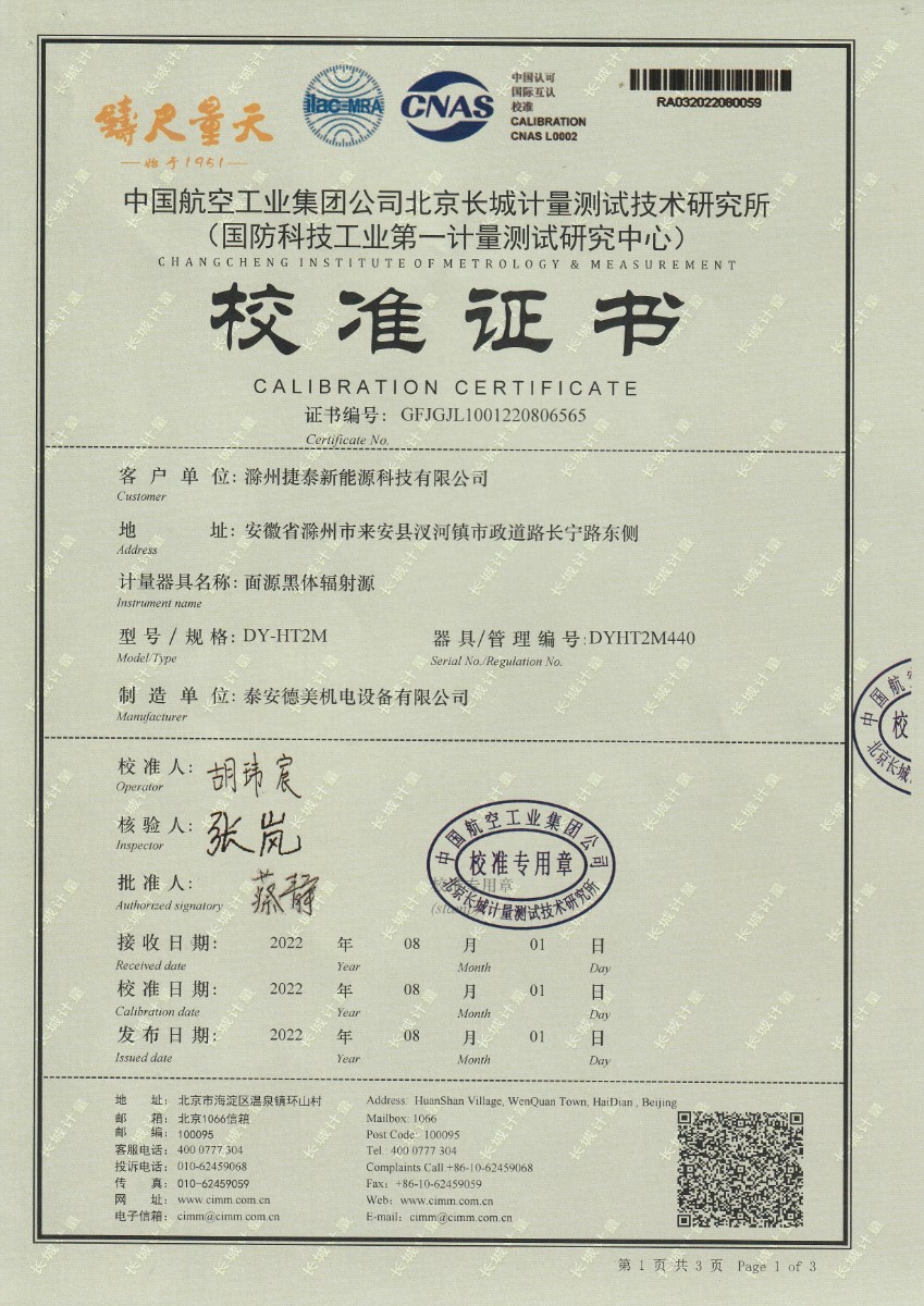 滁州捷泰新能源科技有限公司-面源黑體爐 2022-8-17 本文被閱讀 14007 次