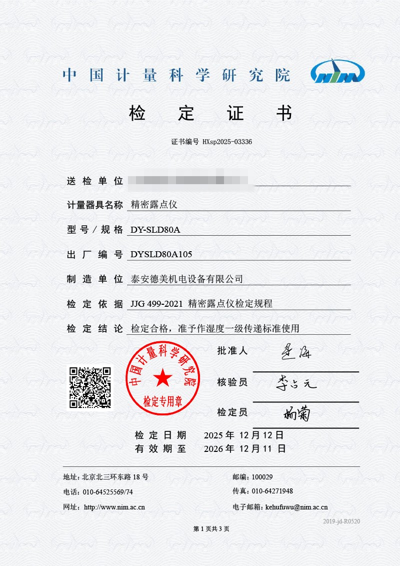露點(diǎn)儀校準(zhǔn)系統(tǒng)校準(zhǔn)證書 2026-1-4 本文被閱讀 340 次