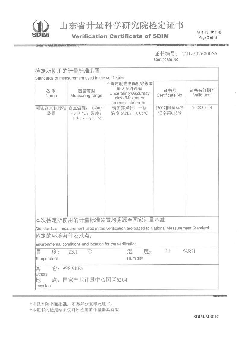 露點(diǎn)儀校準(zhǔn)、檢定證書 2026-4-7 本文被閱讀 195 次