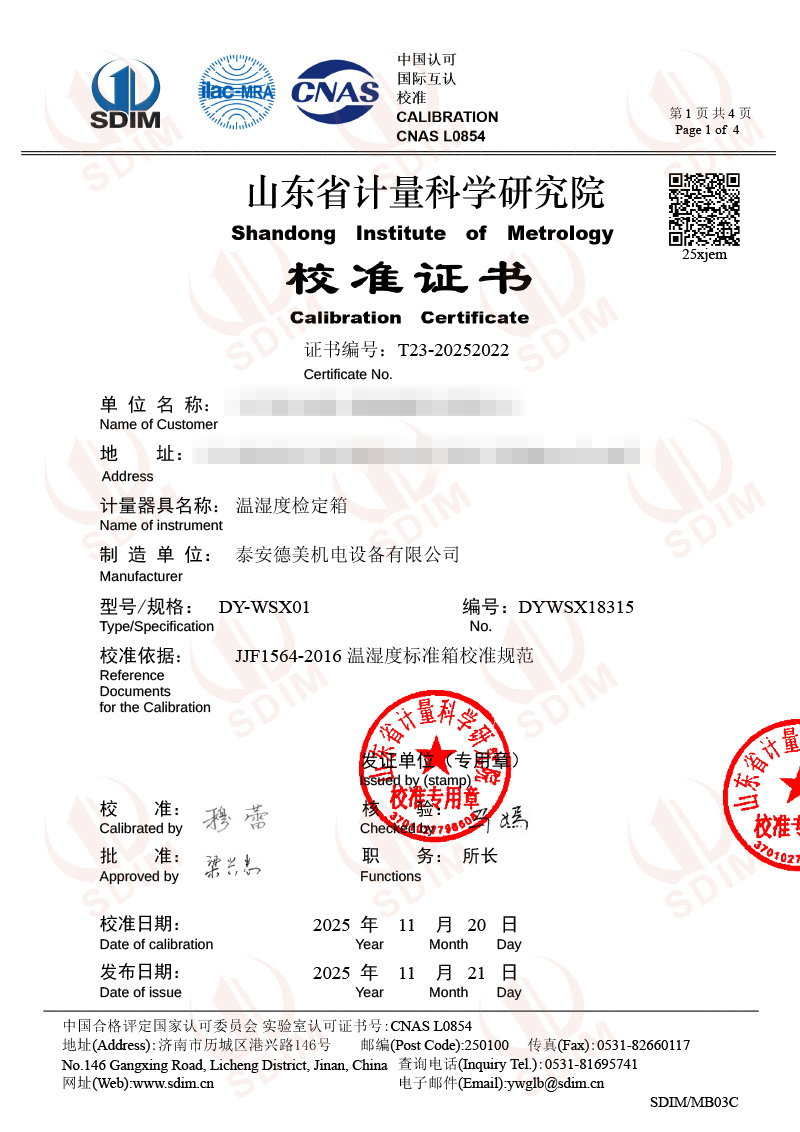 溫濕度檢定箱校準(zhǔn)證書 2025-11-25 本文被閱讀 838 次